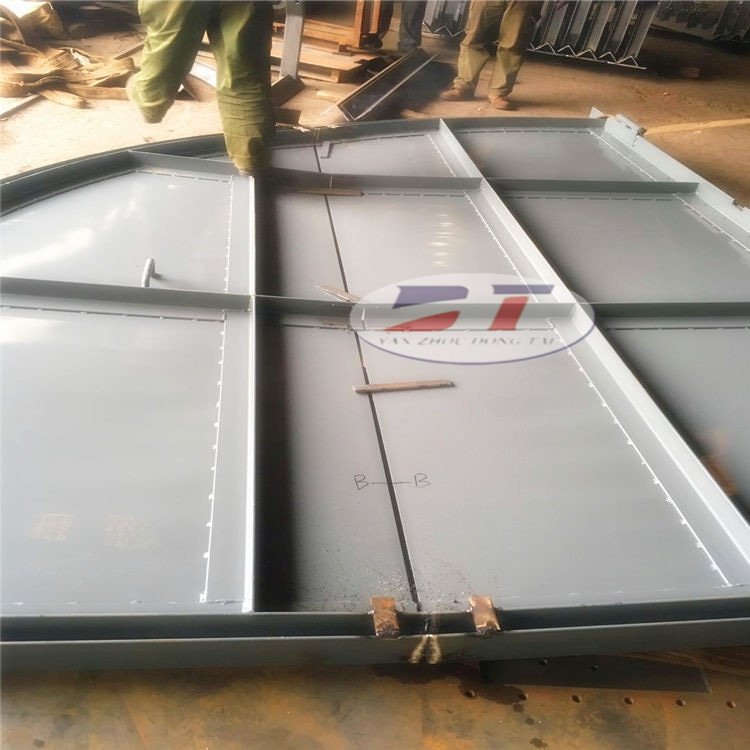斜風井防爆門是安裝在裝有主要通風機的排風井口上的特殊密封井蓋。在正常通風時,它被用來隔離井下氣流與地面大氣,防止風流短路,保證通風系統正常。當井下一旦發生瓦斯或煤塵爆炸事故時,防爆門被爆炸的氣流沖擊打開,從而爆炸氣流直接排放到地面大氣,起到卸壓作用,防止主要通風機因爆炸氣流沖擊而造成損壞;當主要通風機停止運行時,可以打開防爆門,以利用自然風壓通風。